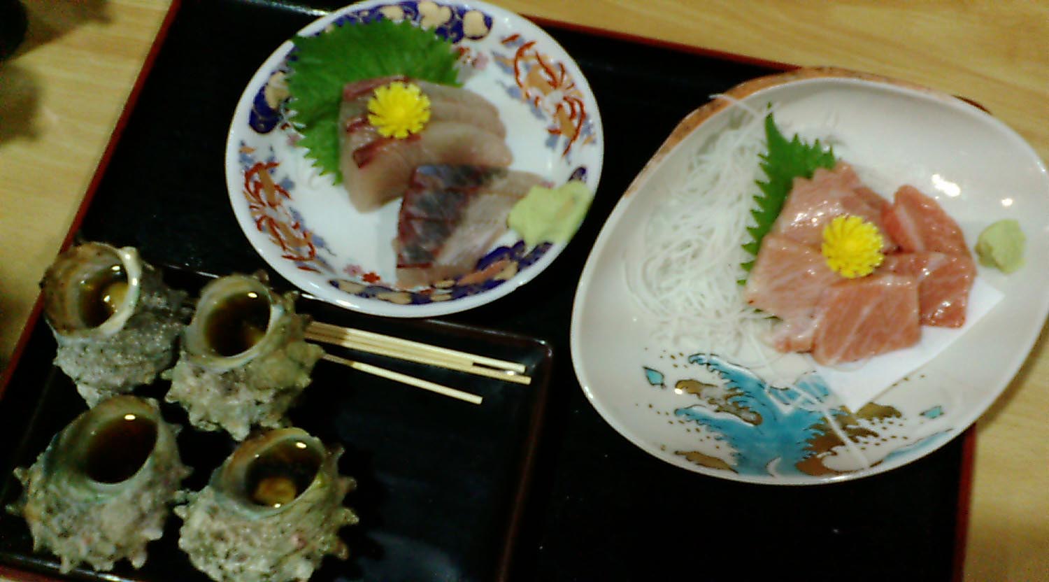で、満腹にならなかったので(笑)、かんぱちとオオトロと、サザエの壷焼も食べました。